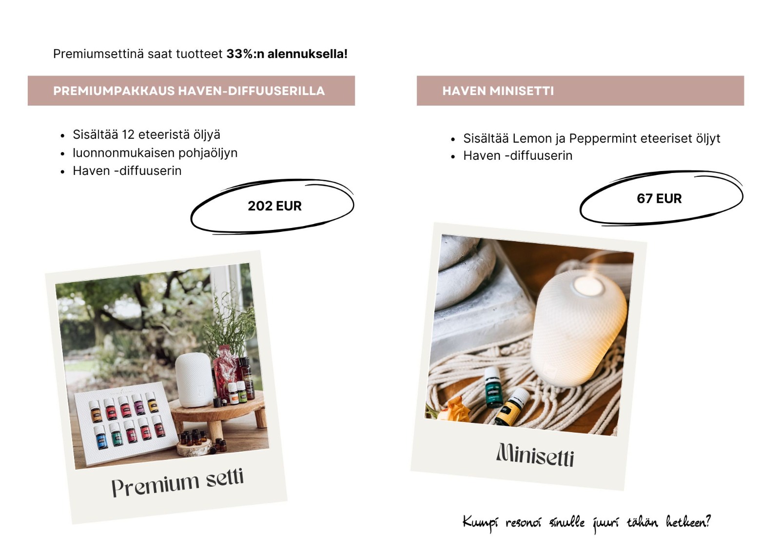 Kun saat Premium setin, laita Laventelia diffuuseriin, jotta nukut hyvää unta.